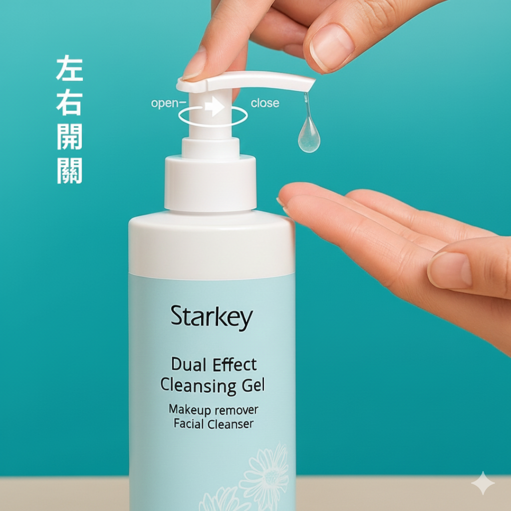 - 乾卸(卸妝):臉和手部保持乾燥,取適量凝膠於手掌,按摩至產生白色黏稠絲狀物,徹底黏附彩妝與髒污,再用清水洗淨。